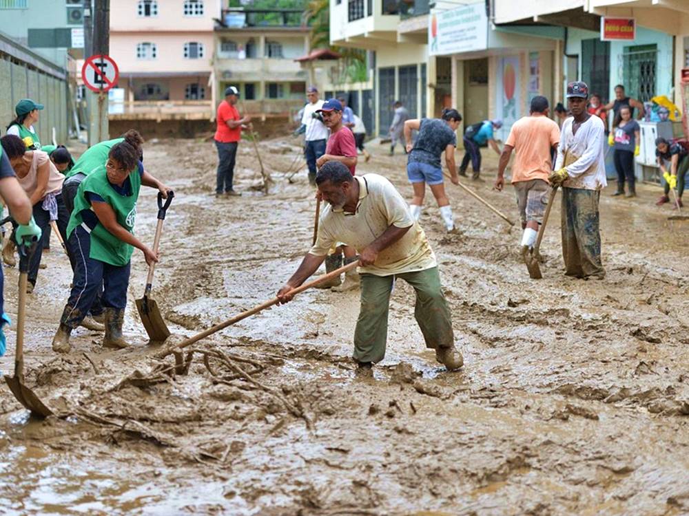 Durante todo o dia, os voluntários recolheram entulhos que estavam espalhados pelas ruas, auxiliaram na retirada de várias residências e removeram grande parte da lama acumulada nas vias. Os trabalhos foram auxiliados pelas máquinas contratados pelo Governo do Estado, além de veículos e equipamentos de órgãos do Estado, do Exército e também os cedidos por particulares.