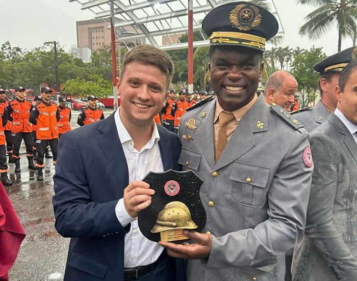 Ainda na Capital, o prefeito Hugo Luiz esteve no Quartel do Corpo de Bombeiros Militar do Espírito Santo, onde foi homenageado com a comenda “Amigo do Bombeiro”. A honraria é destinada a pessoas que se destacam pelo apoio às atividades da corporação e pela identificação com seus objetivos institucionais.