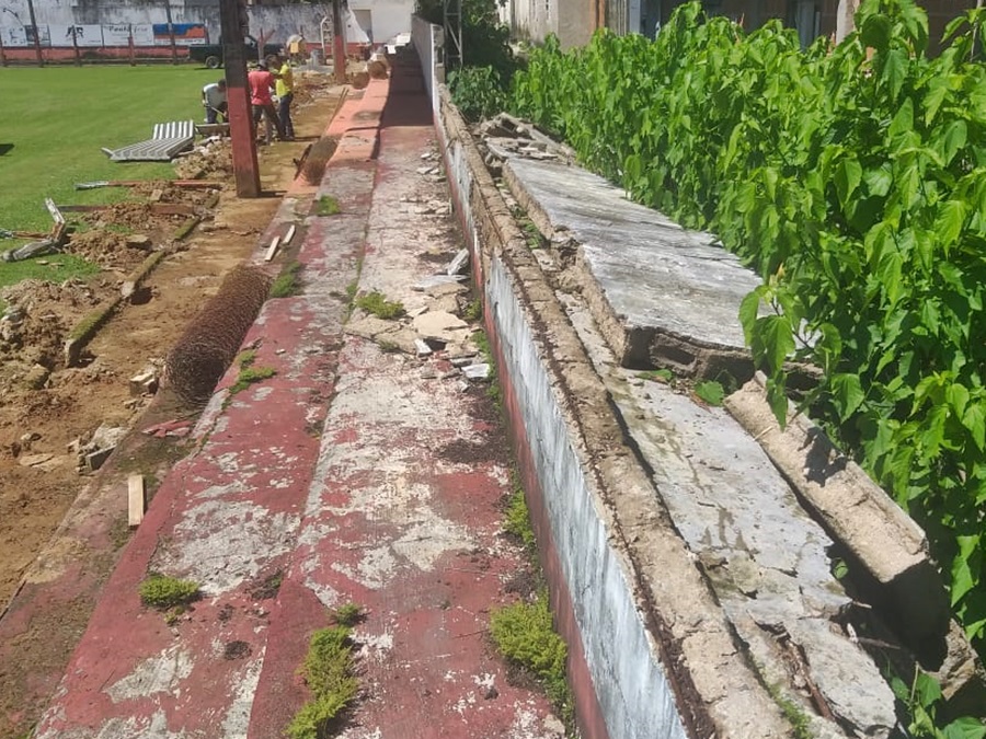 A empresa que reconstrói a arquibancada há mais de três meses ainda se encontra em serviço no desabamento anterior e as tempestades da última semana se encarregaram de derrubar mais de 15 metros do encosto superior do local onde as pessoas assistem aos jogos no Estádio José Henrique Pereira.