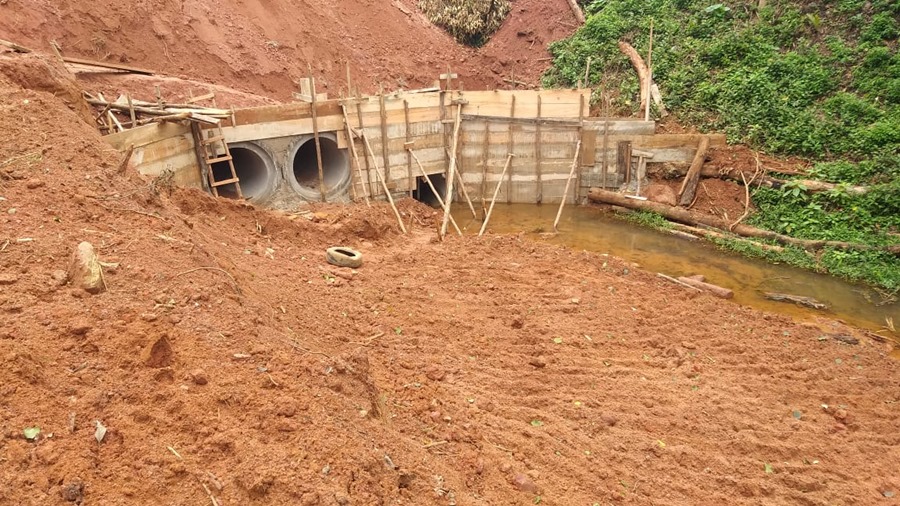 Os ‘manilhões’, como estão sendo denominadas as peças gigantescas e possantes que formam os bueiros, estão sendo adaptados uns aos outros com massa de concreto e ficarão sob o solo, sem serem vistas. A obra é realizada por uma equipe profissional com recursos do Governo do Estado.