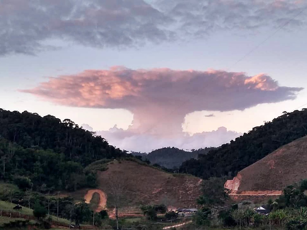 Nuvem em formato de explosão chama a atenção de moradores em Domingos Martins