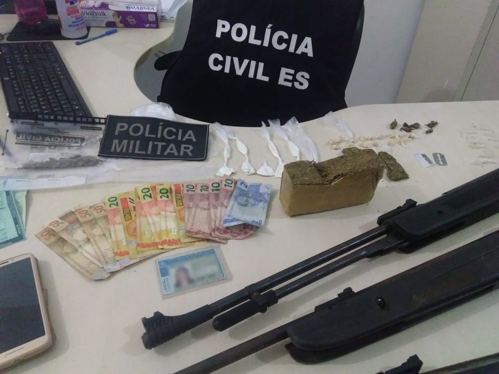 Dando continuidade às buscas na residência da suspeita, a polícia localizou mais drogas e três armas com indícios de terem sido modificadas para uso de munições calibre 22. As armas apreendidas foram encaminhadas para a perícia para confirmar a adulteração.