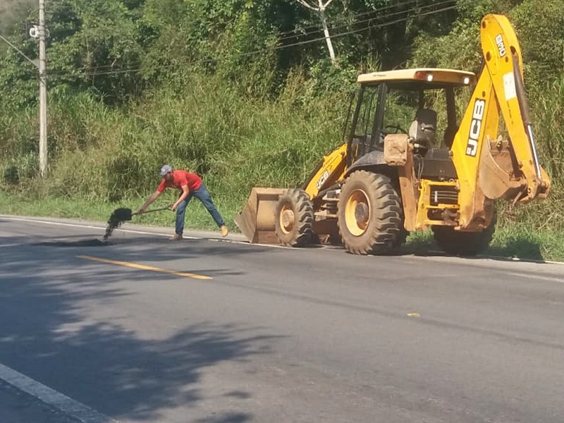 Operação tapa buracos por conta da Prefeitura de Marechal Floriano na BR-262