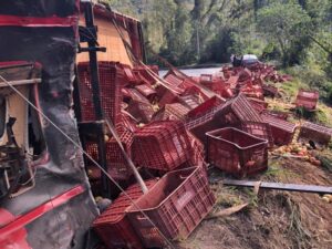 Outro acidente na BR-262 com prejuízos e destruições em Domingos Martins