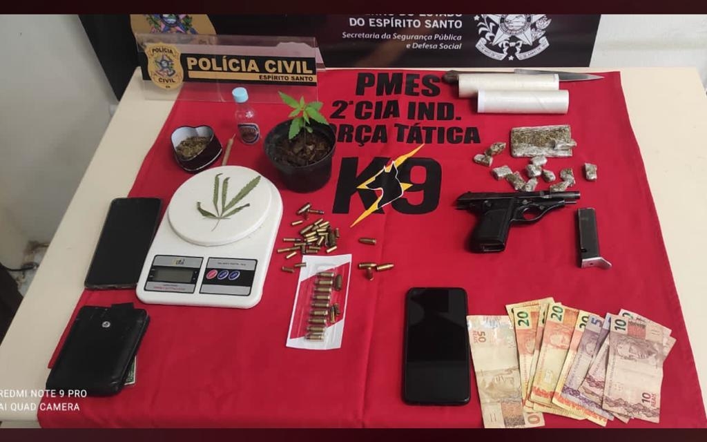 Uma equipe composta por policiais civis da Delegacia Especializada de Narcóticos (Denarc) de Venda Nova do Imigrante e policiais militares da 2ª Companhia Independente realizou uma operação para cumprimento de mandado de busca e apreensão em uma residência no bairro Tapera, zona rural do município. Um motorista de caminhão de 51 anos e a filha dele, de 23, foram presos em flagrante. A operação ocorreu na última quinta-feira (11).