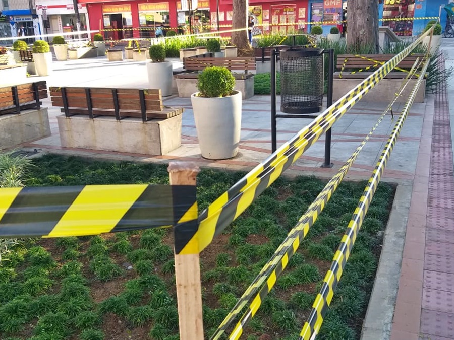 Para evitar ataque de vândalos fitas mais resistentes são instaladas em praças de Marechal FlorianoAs fitas servem para evitar a propagação do coronavírus (Covid-19), por meio de aglomerações de pessoas. Antes as fitas mediam menos de cinco centímetros de largura, e as que são instaladas agora possuem o dobro.