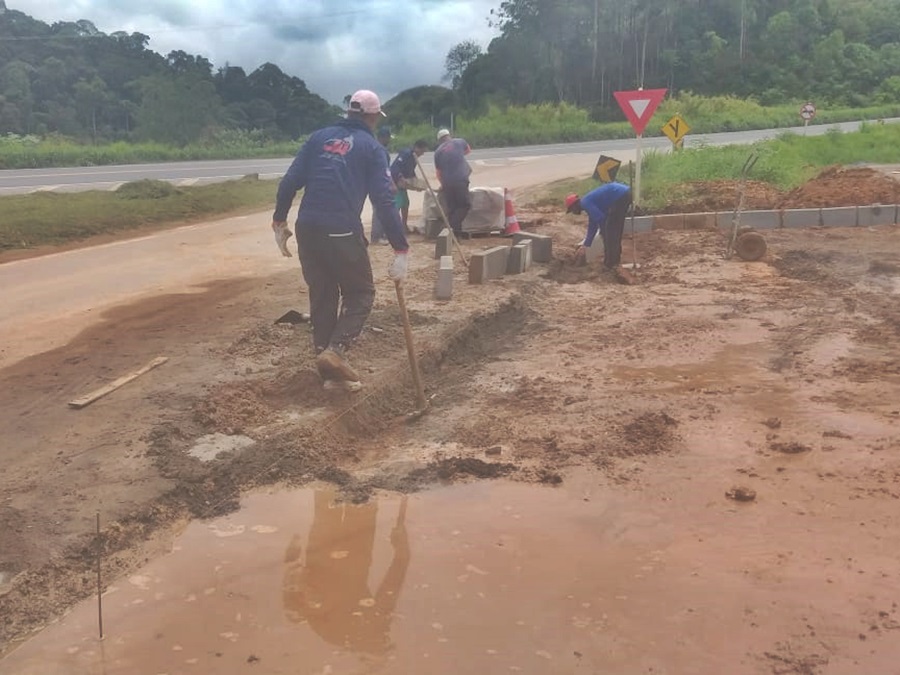 Pavimentação iniciada com instalação de meios fios no Trevo de Paraju, Marechal Floriano