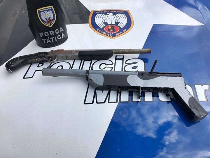 Os policiais militares foram até o local do cumprimento do mandado de busca e apreensão da quinta-feira passada para conferirem se havia mais algum material e conseguiram encontrar mais duas armas, sendo uma de fabricação caseira calibre 12 e a outra um garruchão calibre 38.