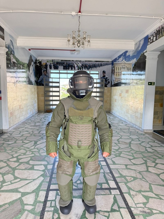 O equipamento será utilizado por policiais militares especializados na identificação, manipulação e desativação de explosivos. O traje oferece proteção contra os principais efeitos de uma explosão, como onda de choque, estilhaços, impacto e calor, garantindo maior segurança ao operador em situações de alto risco.