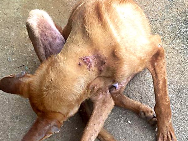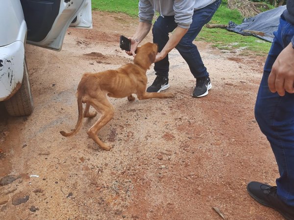 A equipe da Vigilância Sanitária e membros da AMAR se deslocaram para a região informada e encontraram o cão vagando em uma estrada de terra. O animal estava com muita fome, sede e muito magro, além de apresentar ferimentos na pele e falha na pelagem.