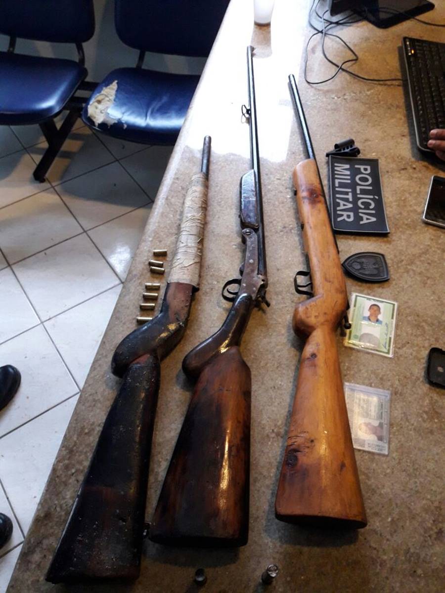 Na ação, que aconteceu por volta das 6 horas da manhã, foram encontrados na casa onde o trio estava: um tatu (já morto), uma faca, duas munições calibre 36, uma espingarda artesanal, uma espingarda calibre 36, uma espingarda caseira danificada, um recipiente para transporte e armazenamento de pólvora e munição e sete munições já utilizadas.