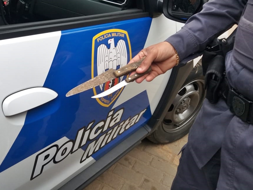 Policiais militares apreendem facas que eram usadas por moradora de rua para ameaçar homem