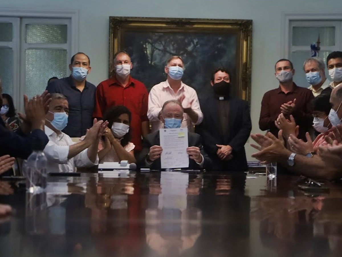 Prefeito e vice-prefeito de Domingos Martins assinam convênio com a Sedurb para obras no município
