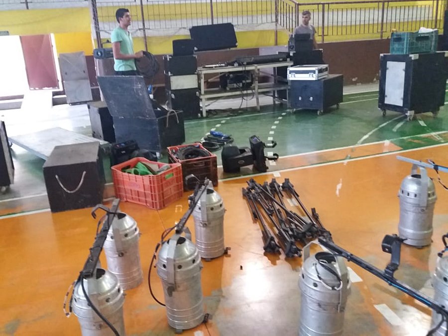 Dezenas de equipamentos especiais de sonorização e iluminação começaram a ser instalados por uma equipe capacitada, na manhã desta terça-feira (16), no interior do prédio do Ginásio de Esportes Paulo Antônio Lorenzoni, em Marechal Floriano. Neste local acontecerá a apresentação teatral da “Paixão, Morte e Ressurreição de Jesus Cristo”.