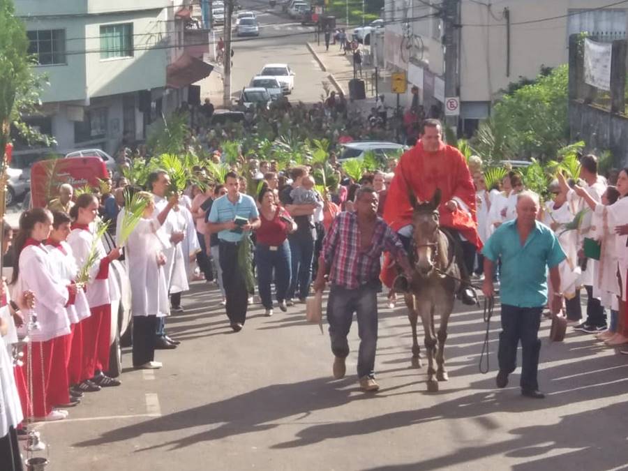 O padre deixou a ‘pracinha’ montado na mulinha e não parou até chegar ao local conhecido como ‘subida da igreja’, a menos de 20 metros da Matriz de Sant’Ana. Ele encerrou a fase inicial da celebração neste momento, quando todos adentraram a Matriz de Sant’ Ana para participação da missa de abertura da programação da Páscoa.