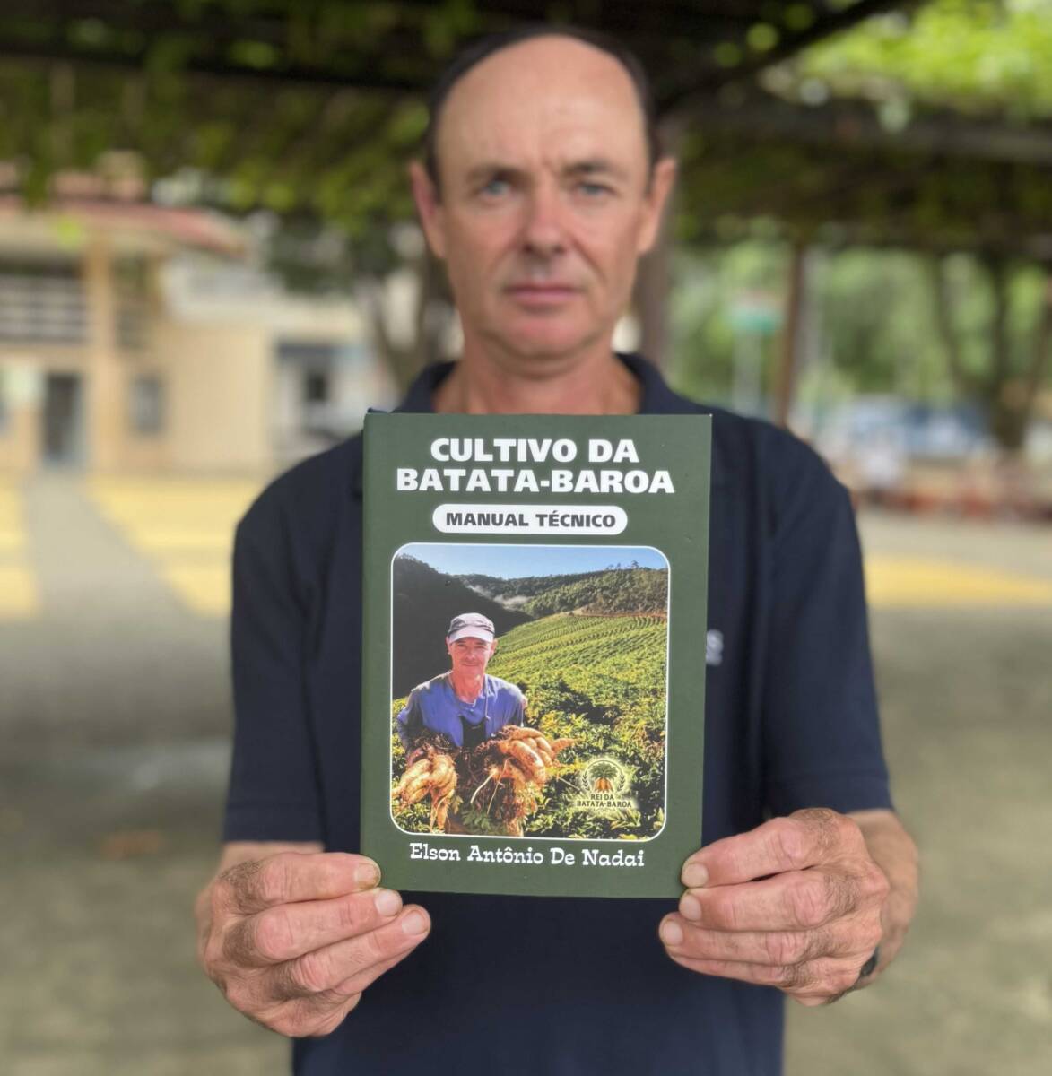 “Quem aplicar corretamente as técnicas apresentadas no manual poderá alcançar um aumento de até 30% no desempenho da lavoura”, afirma o autor da obra, Elson Antônio De Nadai, reconhecido regionalmente como Rei da Batata-Baroa.