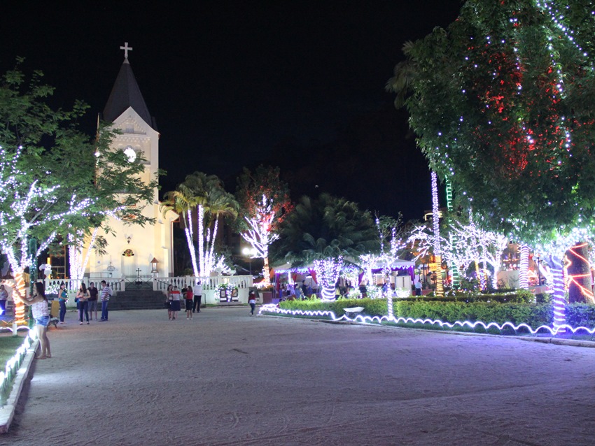 Luzes acesas da vila e da praça acesas a partir das 18 horas