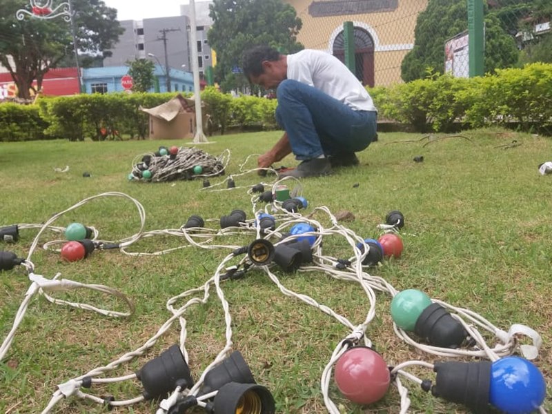 As chuvas nas últimas semanas colaboraram para o atraso do serviço de montagens e reformulações das imagens e pequenas casinhas que fazem parte do ornamento geral, mas segundo a secretária de Cultura e Turismo, Goretti Pereira Pinto Gerhadt, a equipe trabalha de forma prestativa e dará conta do trabalho.