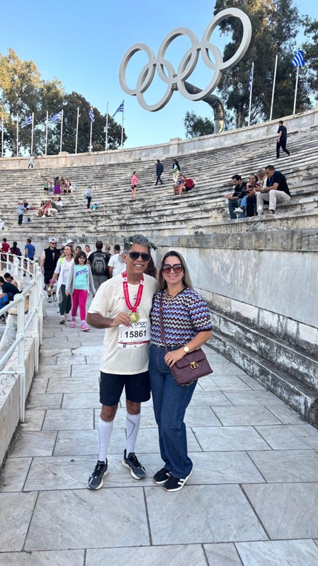 Antes da prova – que ocorreu no último mês de novembro – Mari o ajudou a se preparar desde cedo e depois seguiu para o Estádio Panatenaico para esperar sua chegada. Ela filmou o momento em que ele cruzou a linha final, registro que se tornou especial para os dois. “Fiquei muito feliz de ver os olhos dela brilharem, vibrando comigo. Foi uma alegria imensa compartilhar essa conquista ímpar, a maior de todas as corridas”, diz.