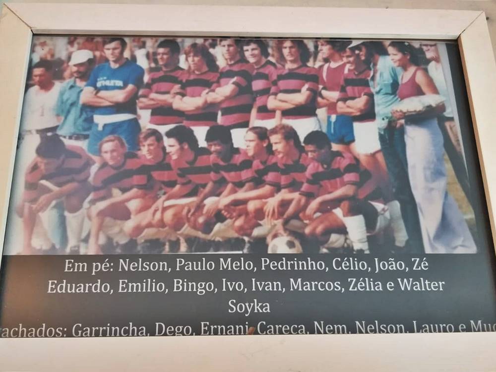 Quadro do SC Campinho da década de 70 com o campeão mundial Garrincha ornamenta estabelecimento em Marechal