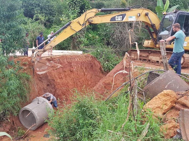 A Secretaria de Interior e Transportes de Marechal Floriano está dando continuidade aos trabalhos de recuperação de um bueiro, que foi destruído pela força da correnteza das águas, procedentes das chuvas sequentes na semana anterior, e de uma ponte em uma estrada vicinal que ficou com a segurança comprometida após uma série de temporais.