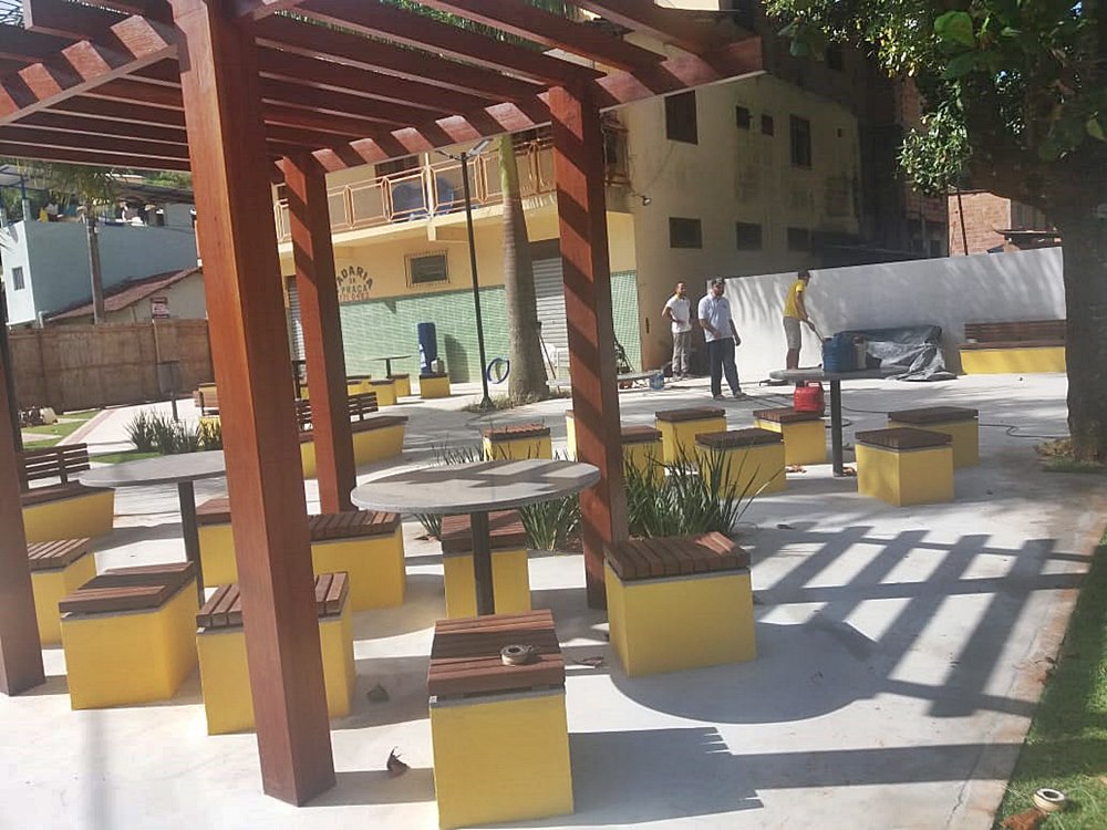 “A nossa pracinha ficará linda, notadamente com as fortes cores usadas nas bancadas e mesas, além do piso que foi construído com muito capricho”, afirma Leona, ressaltando ser testemunha ocular dos trabalhos seguidos e dos esforços dos pedreiros e ajudantes para concluir a reforma total. “Chuva e sol forte não foram empecilhos”, disse.