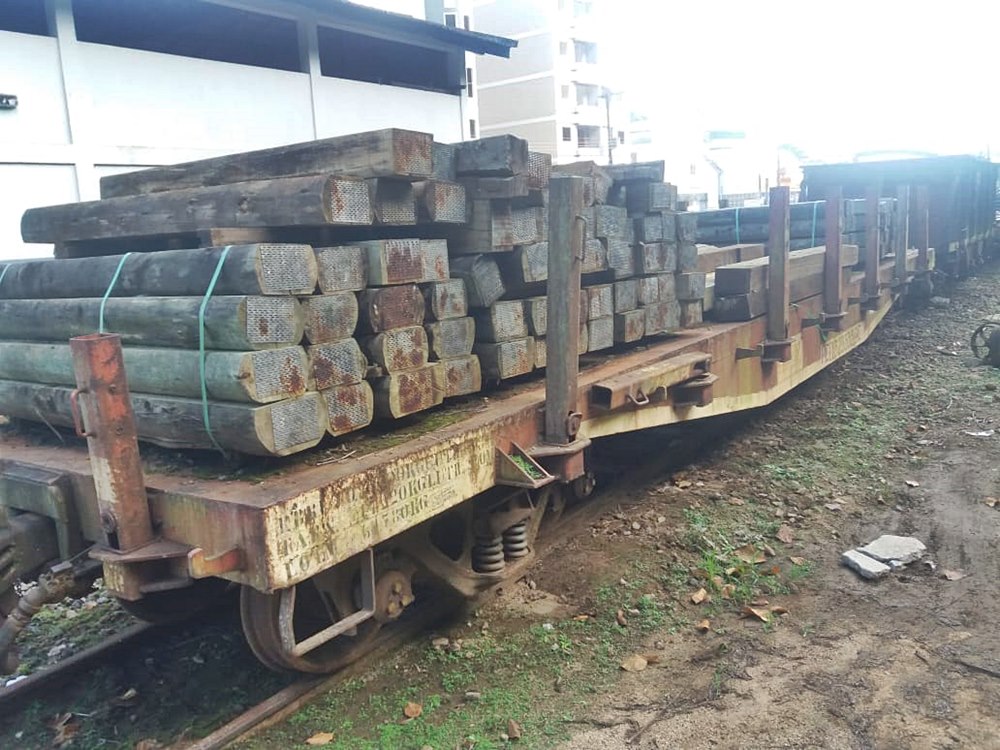 De uma grande quantidade de dormentes de madeira que estava empilhada no terreno ao lado da antiga estação ferroviária, atual Casa Cultural Clara Luíza Hulle Pereira, houve uma sobra de apenas 164 peças no local. O restante foi removido por um caminhão de carroceria com guincho acoplado.