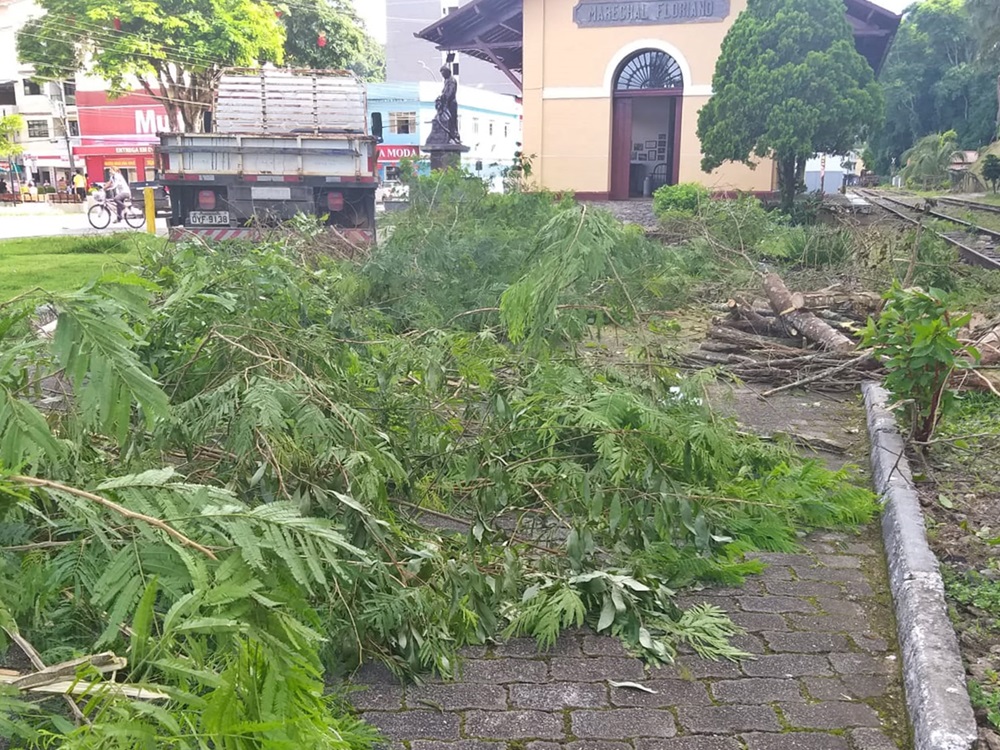 Removida árvore que desabou ao lado do Museu do Imperador em Marechal FlorianoO corte da árvore na linha férrea começou por volta das 7 horas desta sexta-feira e o carregamento em um caminhão da municipalidade se deu após. Houve também a remoção de outras árvores à margem da Rodovia BR-262, que caíram nos últimos dias de temporal com ventos fortes.