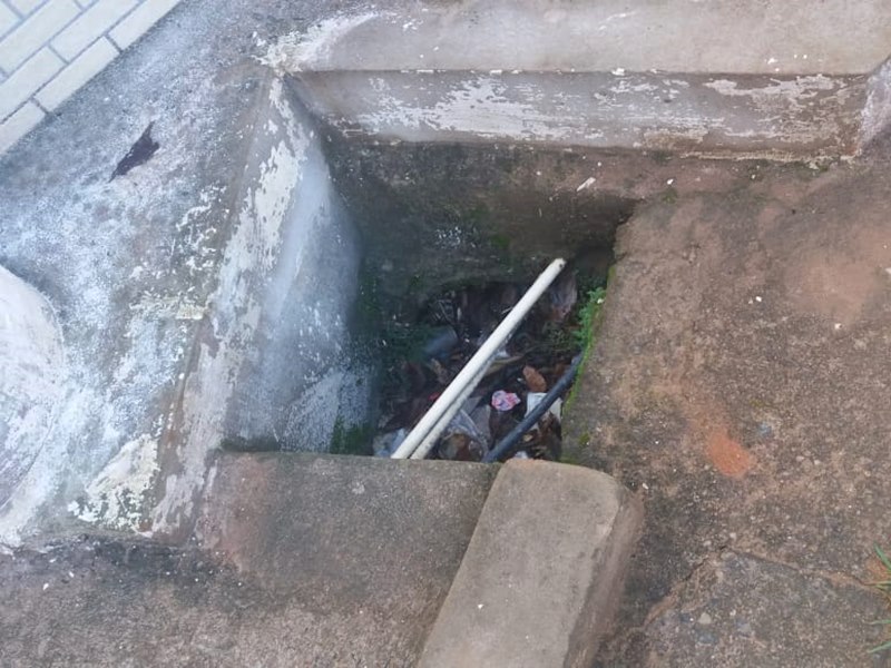 Risco de queda causado por caixa com tubos de água destampada no Bairro Santa Rita em Marechal FlorianoEm determinados dias da semana, ocorrem também, neste mesmo local, cultos evangélicos e as pessoas que acessam a igreja são obrigadas a pular sobre a caixa com os canos, ou simplesmente passar no meio da rua.