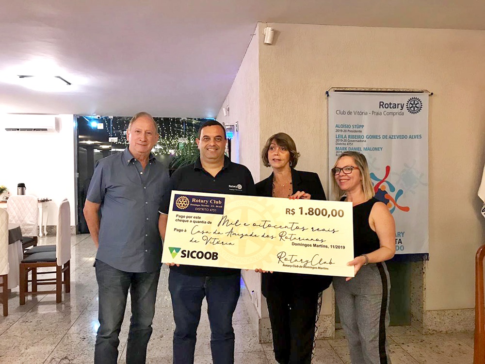 Integrantes do Rotary Club de Domingos Martins entregaram um cheque, no valor de R$ 1,8 mil, à Casa da Amizade, em Vitória. Na entidade, formada por mulheres de integrantes do Rotary Club do Estado, são produzidos os sutiãs com enchimentos especiais. As peças simulam perfeitamente o órgão removido de mulheres que tiveram câncer de mama, as quais foram submetidas à mastectomia, que é a retirada de um, ou em alguns casos, até dos dois seios.