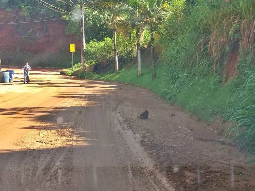 Conhecida por “Rua de Batatal” a via que segue após o Bairro Santa Rita em direção à Aparecida, Alfredo Chaves, às proximidades do Estádio Edmundo Rupf, o campo de futebol do Apollo XIII, está tomada por lama que desabaram das montanhas descobertas, pela forte chuva de ontem (14).