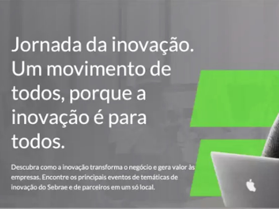 Para mostrar que a inovação é para todos os tipos de empresas em qualquer lugar do país, o Sebrae criou a Jornada da Inovação. A iniciativa permite que os empreendedores tenham acesso, em um único local, às ações que promovem a transformação de negócios e geram valor às empresas por meio da inovação. No espaço exclusivo criado dentro do Portal do Sebrae, é possível participar de diversos tipos de eventos digitais e conhecer as soluções inovadoras desenvolvidas pelo Sebrae e parceiros.