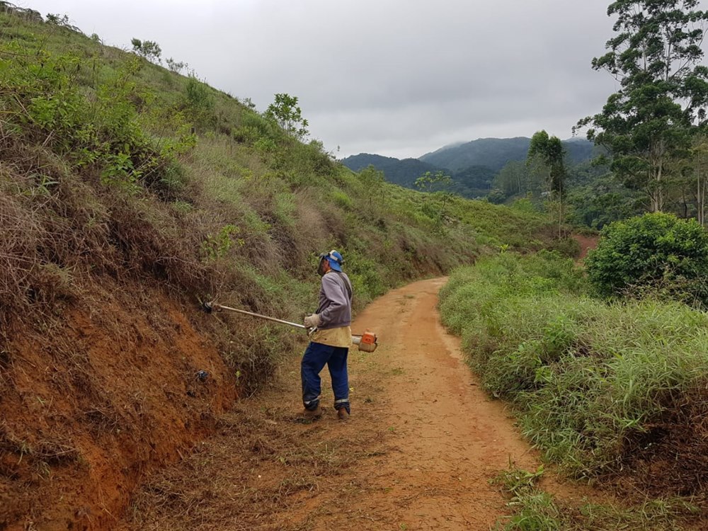 Servidores municipais cortam capim em estrada vicinal em Marechal Floriano