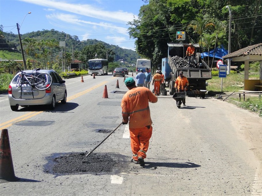 Uma equipe de trabalhadores braçais de uma empreiteira do Departamento Nacional de Infraestrutura de Transportes (DNIT) continuará até a tarde desta sexta-feira (23) o serviço de tapagem de buracos nas duas pistas, entre os quilômetros 45 e 50 da Rodovia BR-262, em Marechal Floriano.