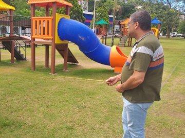 A iniciativa da administração pública foi nesta manhã de quinta-feira (18), com a medição na totalidade do espaço ocupado pelo parquinho das crianças com idades até 12 anos. “A nossa preocupação em fechar o espaço é com os menores que podem ser atropelados ao atravessar a Avenida Presidente Kennedy, onde motoristas e motociclistas trafegam”.