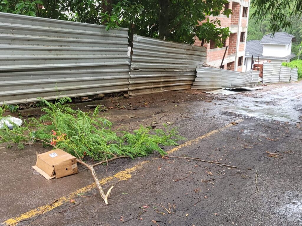 Em Soído de Cima, a força do vento derrubou várias árvores na rodovia que liga o distrito ao Centro da cidade. Ruas também foram alagadas e muita lama ficou em vias após o temporal.
