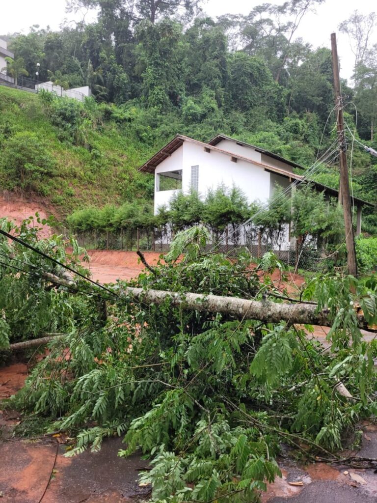 Há ainda relatos de alagamento, árvores caídas com interdição de ruas e derrubada de fios elétricos e cabos de internet em vários bairros da Sede e de outras localidades de Domingos Martins.