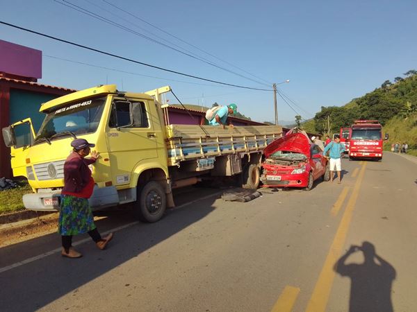 Já a motorista teve ferimentos mais leves e foi socorrida pelo Samu. A jovem ferida estava no banco ao lado da motorista. Com o impacto da batida do carro contra a carroceria do caminhão, ela ficou com os pés presos abaixo do painel do Gol, e apresentava hemorragia na face.