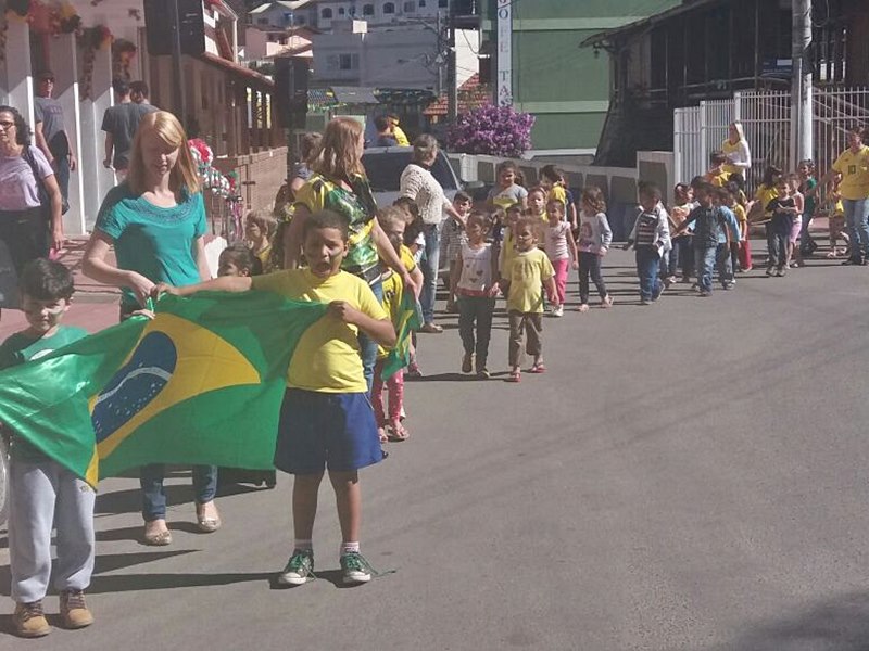 Destaque para a comerciária Aline. Ela manteve no colo a pequena Pérola, que se divertiu sorrindo o tempo todo ao som da meninada que gritava “Brasil, Brasil…”. Outro que não perdeu tempo foi o morador Nivaldo Littig que tomou Davi, seu filho, nos braços e entrou para a caminhada. A passeata que saiu da escola infantil passou pela pracinha e retornou pela avenida principal até a escola com 30 minutos de duração.