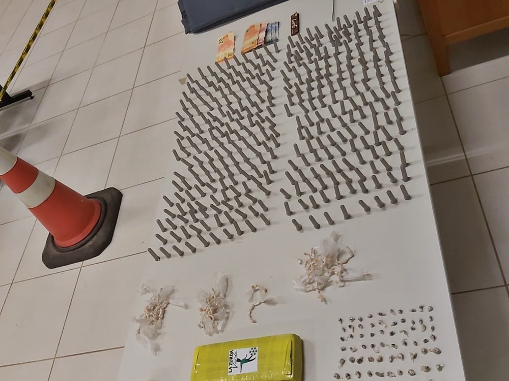 Segundo informações da Polícia Militar, com os detidos foi apreendida uma mochila com 138 pedras de crack, 111 porções de haxixe, duas grandes quantidades de cocaína, dois tabletes de maconha e mais de 300 pinos plásticos para preparo e venda de cocaína.