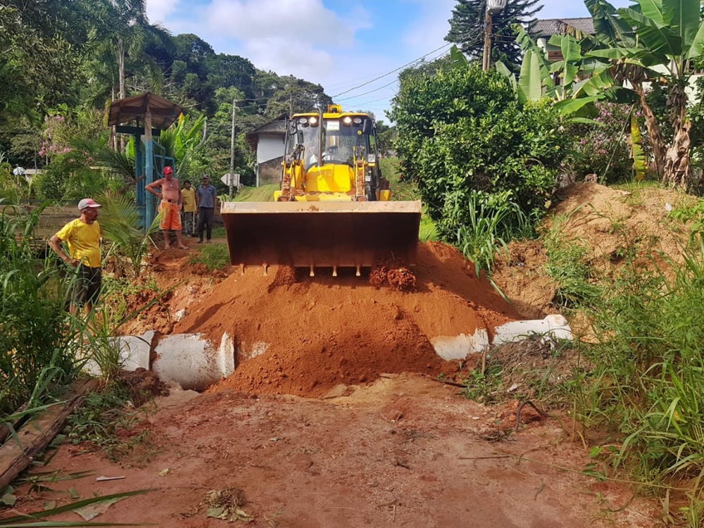 Tratores trabalham nas estradas destruídas em Marechal Floriano e bueiros são reconstruídos