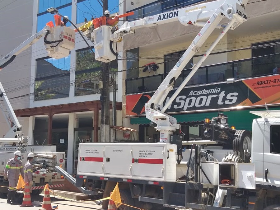 Uma equipe de eletricistas da EDP coloca fim a um perigo iminente, visto somente por poucos moradores de uma via pública movimentada em Marechal Floriano: conhecidas internamente pelos eletricistas da EDP como “cruzetas de madeira”, duas peças deste material que sustentam os cabos de média tensão, foram substituídos por materiais de fibra.