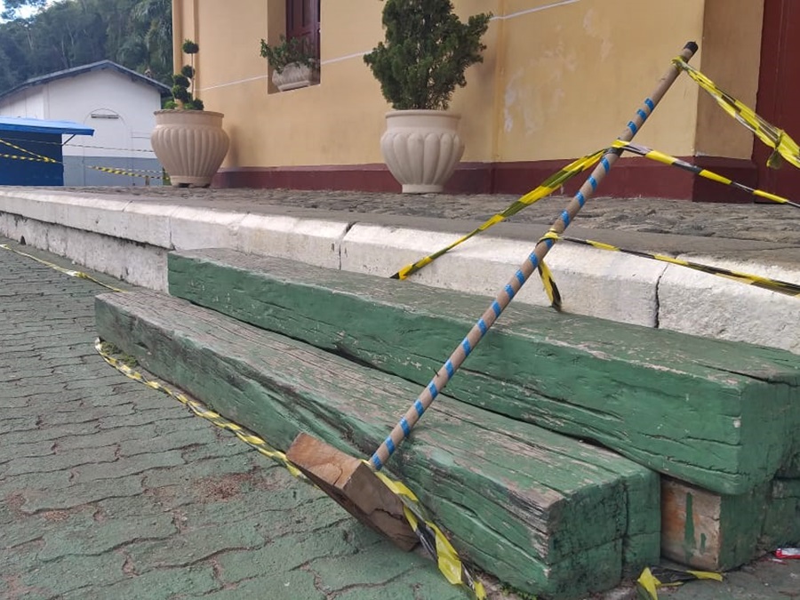 As rajadas de vento da tarde do último sábado (15), em Marechal Floriano, provocaram quedas de árvores e amontoados de folhas que se formaram na Praça José Henrique Pereira, na sede. Houve também uma ação forte de vandalismo com a destruição das fitas plásticas que impedem aglomerações na antiga estação ferroviária, o atual centro cultural.