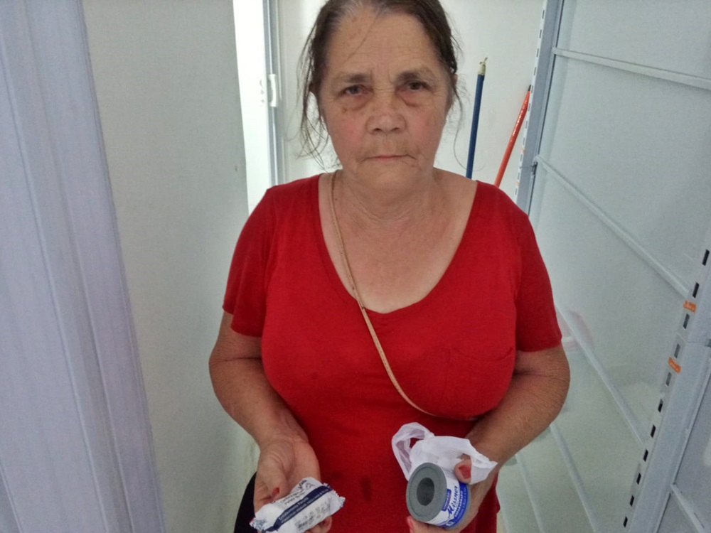 Ela também buscou ser atendida por um médico particular, mas o profissional já não estava mais em seu consultório na ocasião. Depois de idas e vindas, ela decidiu ir até uma farmácia, comprar esparadrapo, gaze e palitos de madeira, com o objetivo de imobilizar o dedo.